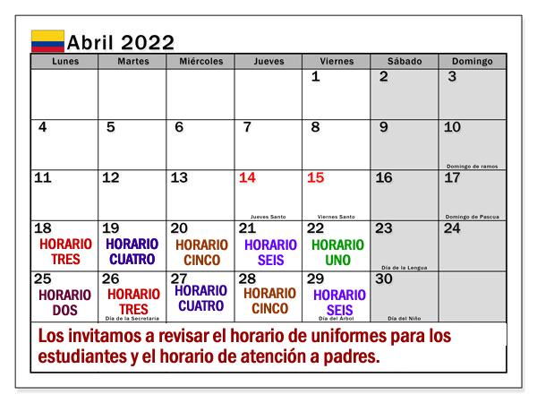 Horario mes de Abril 2022 – Colegio Los Andes